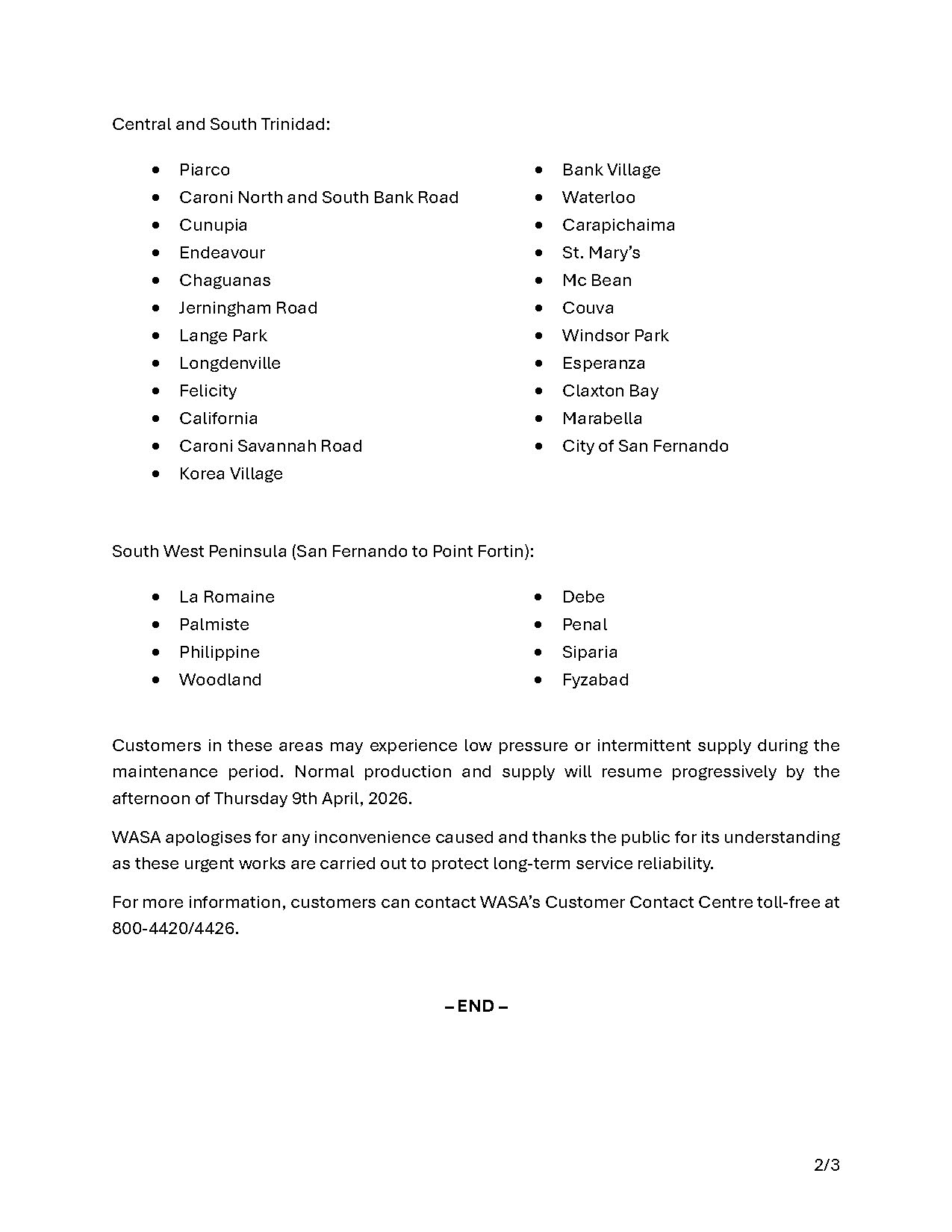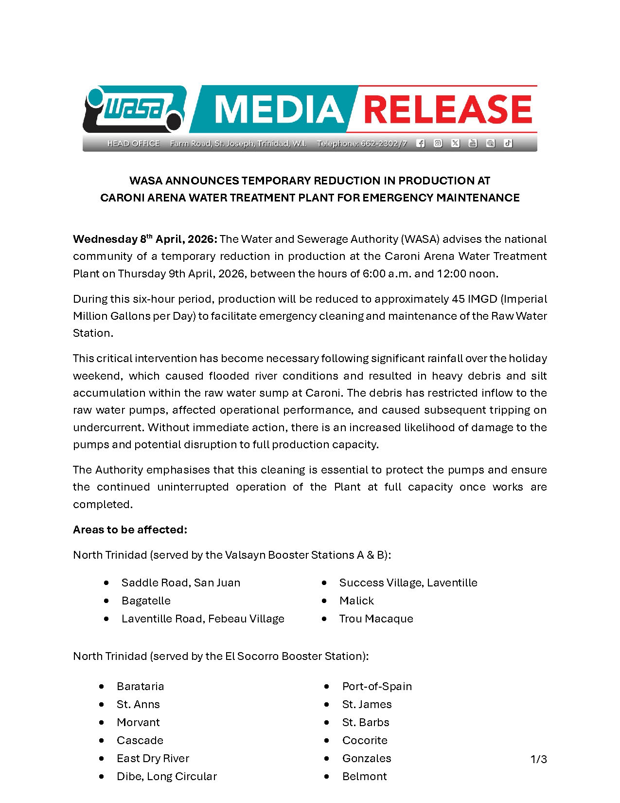 Launch of the WASA Operational Control Centre